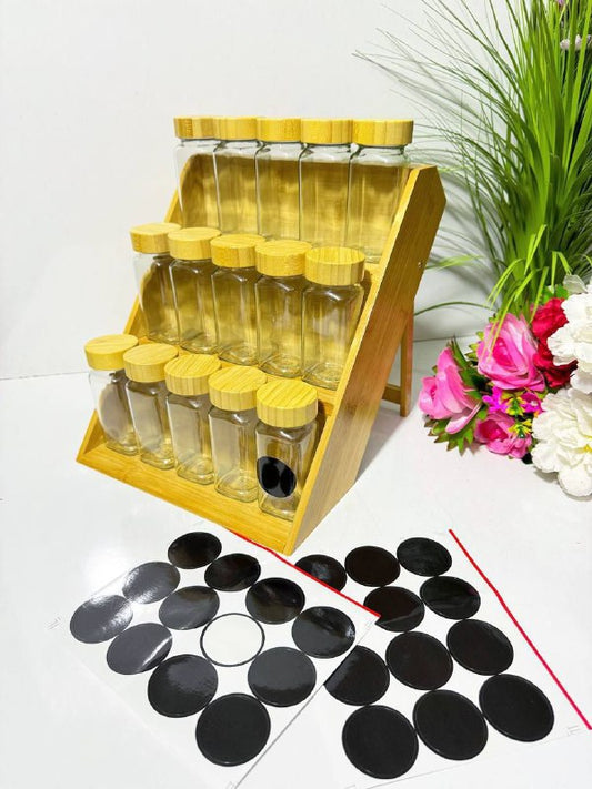 • Boites à épices hermétique en verre avec support en bambou, Pots à épices 15 Pcs