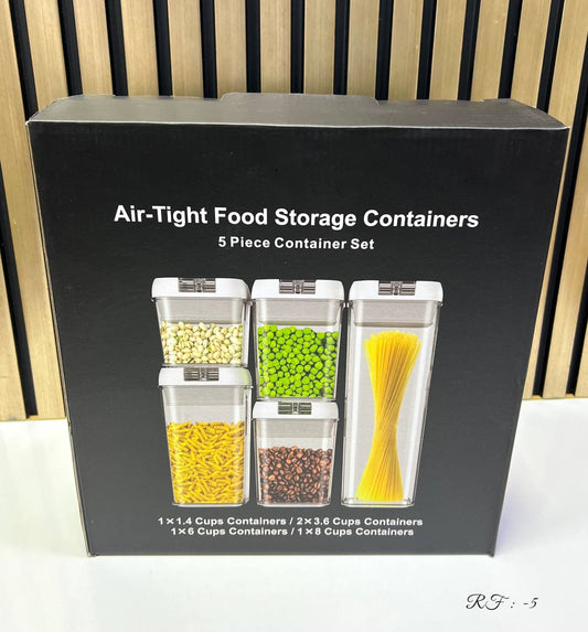 • Air-Tight Food Storage Containers 5 piece Container Set مجموعة حاويات تخزين طعام محكمة الغلق مكونة من 5قطع