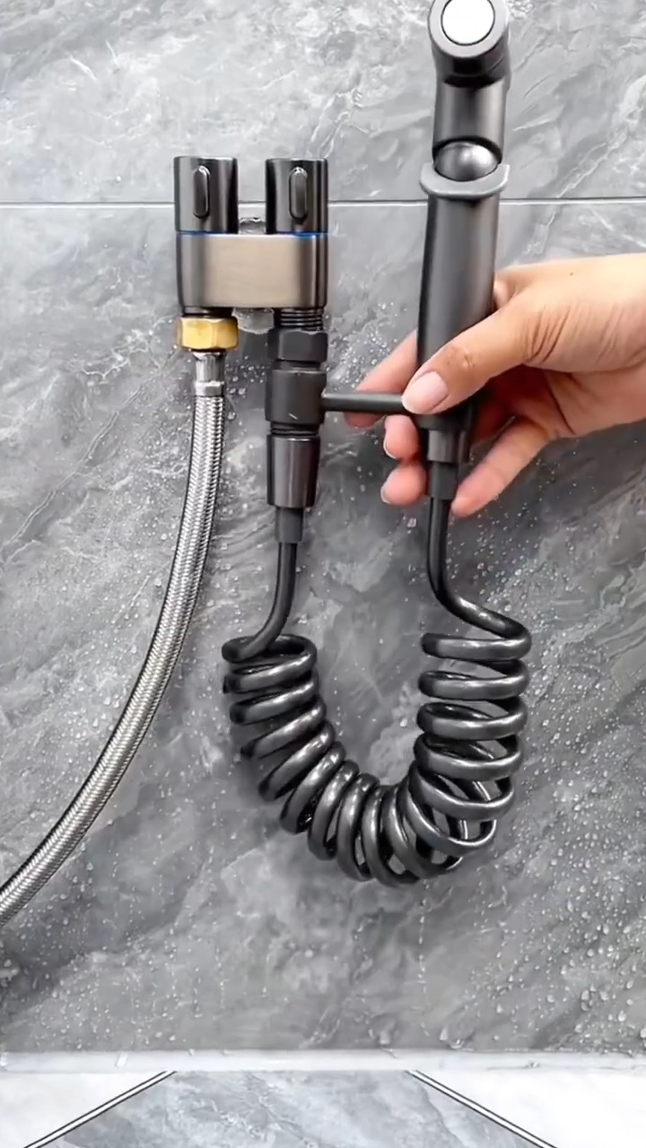 | وصف المنتج : بخاخ المرحاض المثبت على الحائط دُش صغير بتحكم مزدوج، صمام تحكم مزدوج 1 في 2، تحكم مزدوج، صنبور تحكم مزدوج، صنبور مزدوج للمرحاض والغسالة والمغسلة Mini douche avec double commande, double valve de contrôle 1 en 2, double contrôle, double robinet de commande double,double robinet pour WC,lave-linge,lavabo |