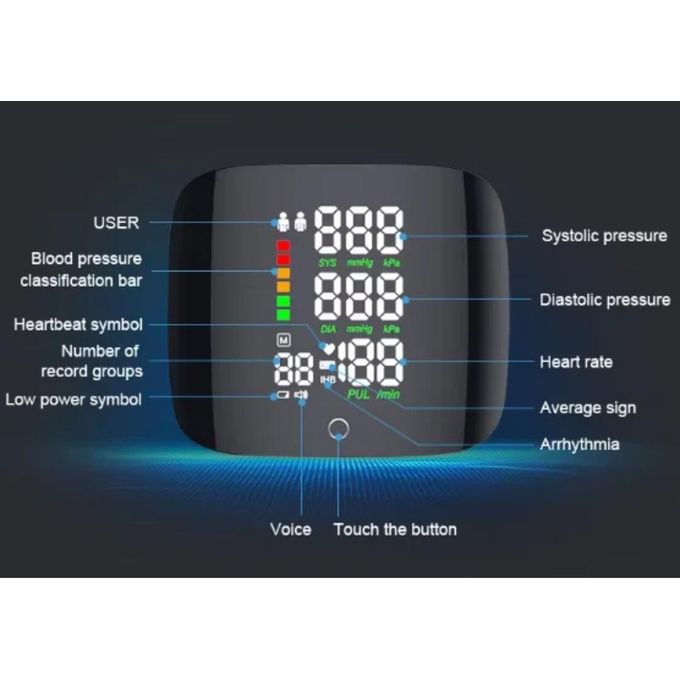 جهاز ضغط الدم الإلكتروني المحمول القابل لإعادة الشحن Tensiomètre Électronique de Poignet Portable rechargeable tactile rétroéclairé