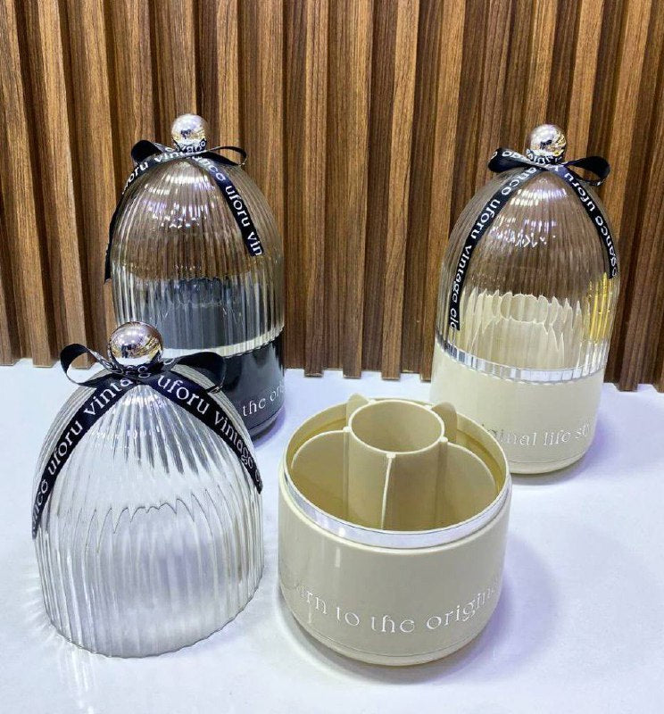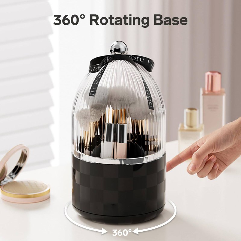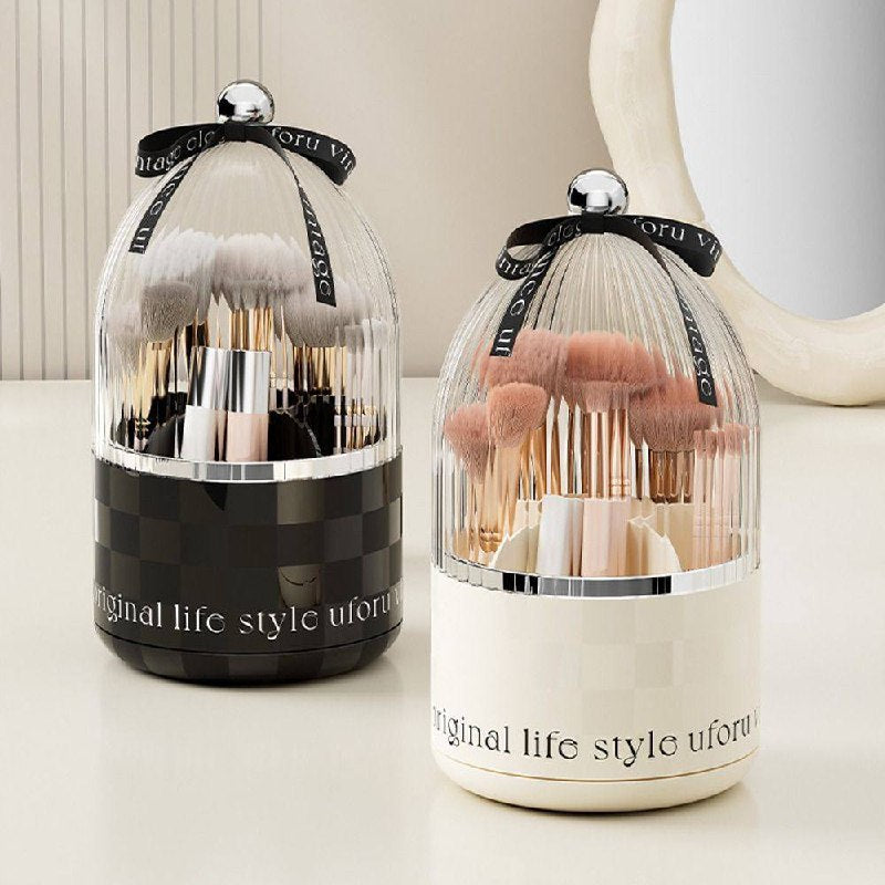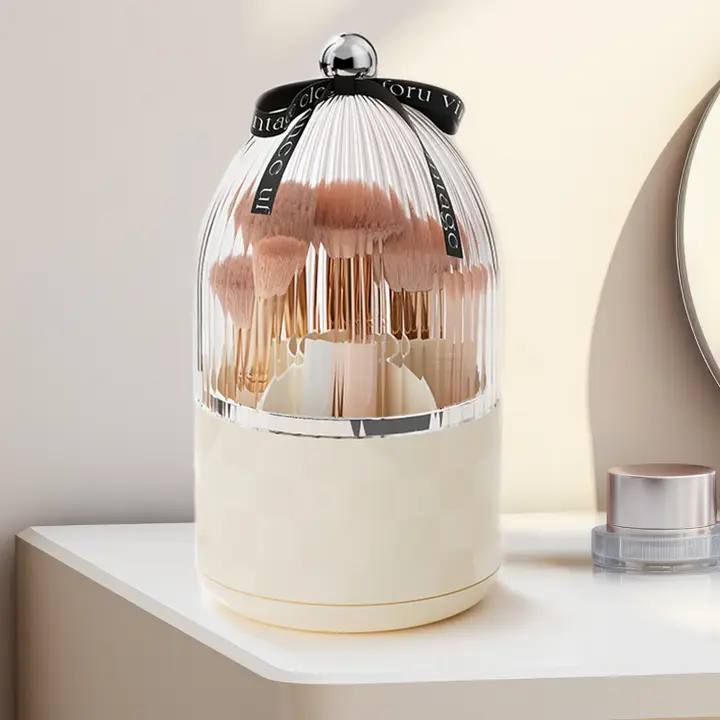 حامل فرش المكياج بغطاء منظم فرش مكياج دوار 360 درجة