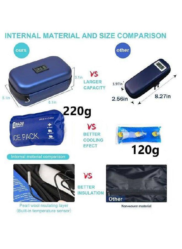 Sac De Rangement Pour Réfrigérateur à Insuline Avec 2 Blocs De Glace