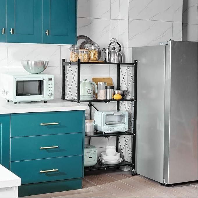 رف معدني قابل للطي بأربع طبقات وعجلات Étagère en Métal Pliable avec 4 Couches et Roues
