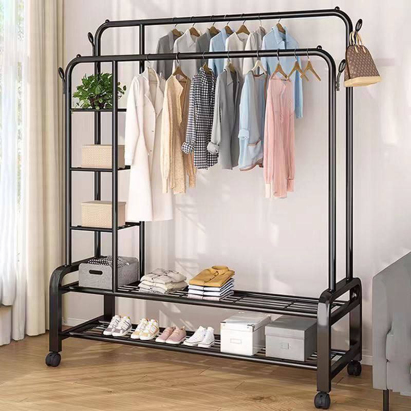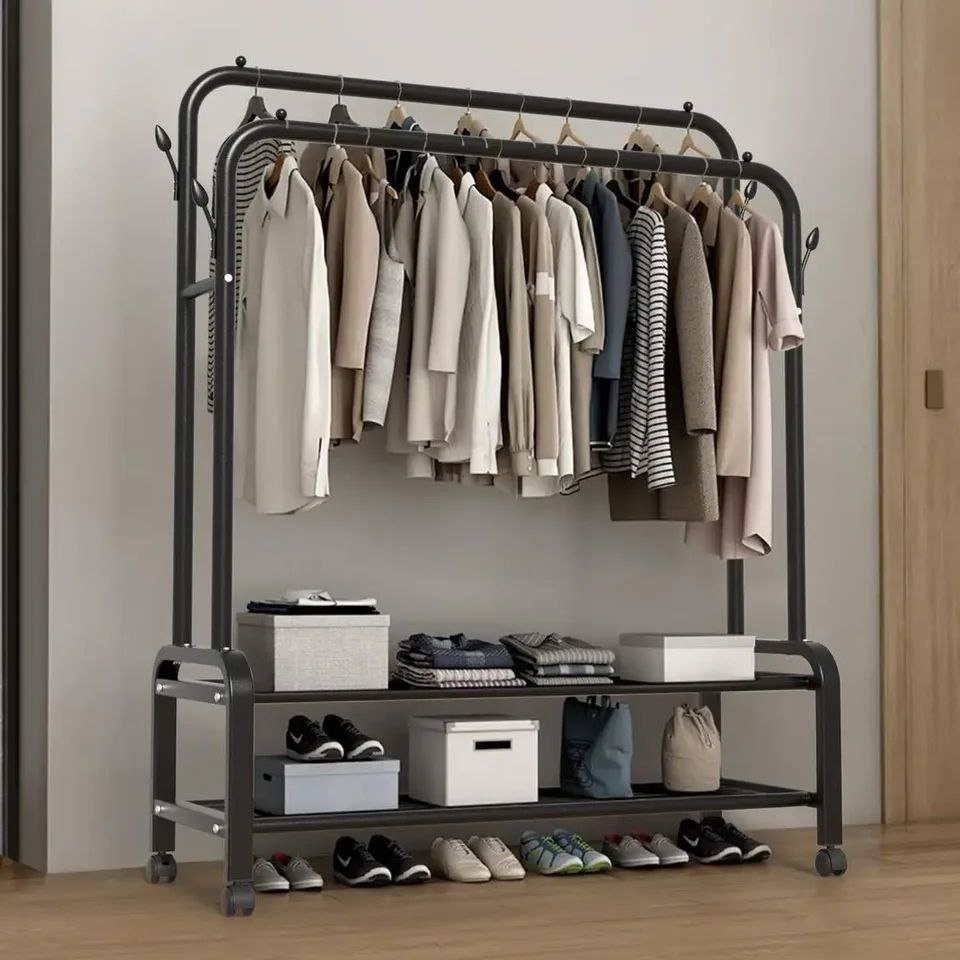 | وصف المنتج : ✅ رف ملابس قوي مزدوج القضبان + رفين للأحذية - سعة كبيرة 48 كجم - تخزين متعدد الوظائف من المعدن الأسود ✅Porte-Vêtements Solide à Double Barre + 2 Étagères à Chaussures – Grande Capacité 48KG – Rangement Multifonction en Métal Noir |