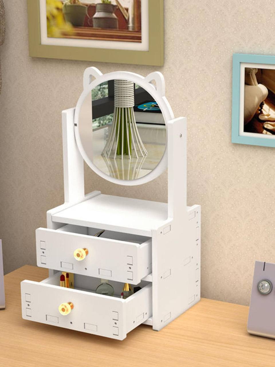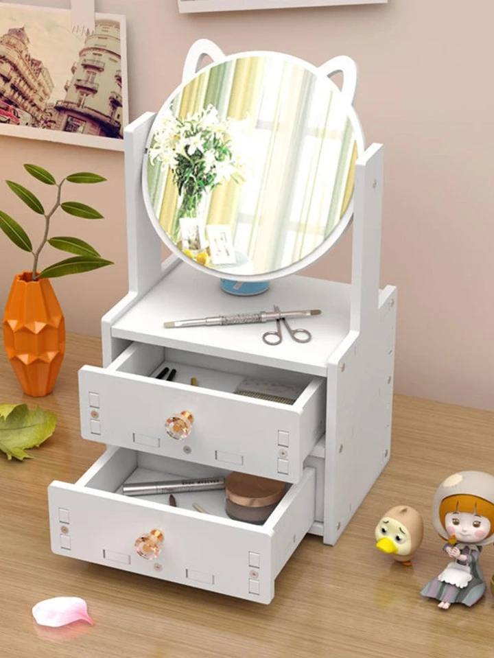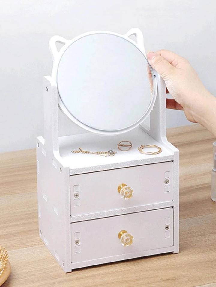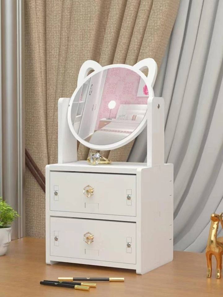 صندوق تخزين الماكياج عصري مع مرآة للنساء لتنظيم المجوهرات