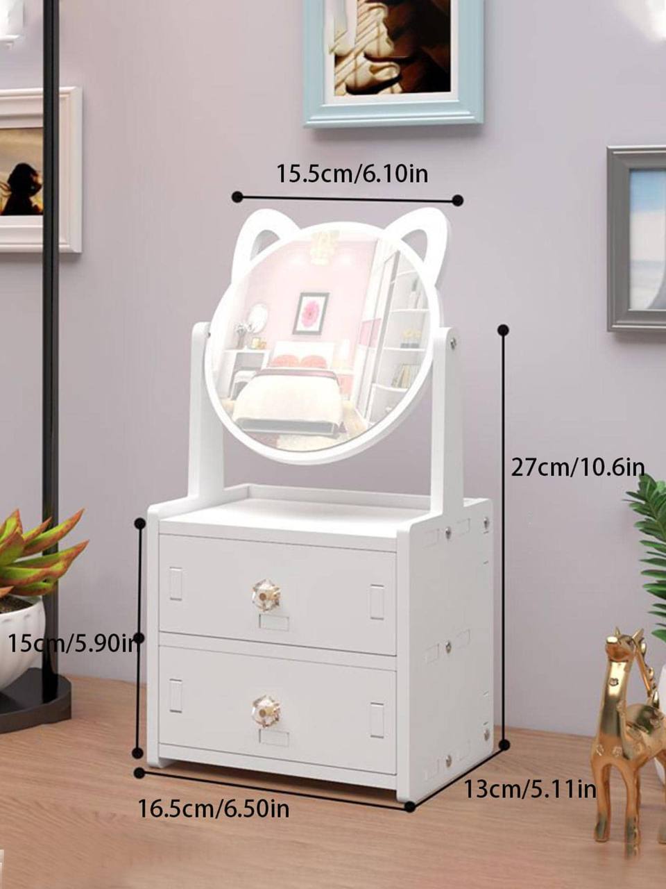 وصف المنتج : ✔️ صندوق تخزين الماكياج عصري مع مرآة للنساء لتنظيم المجوهرات |