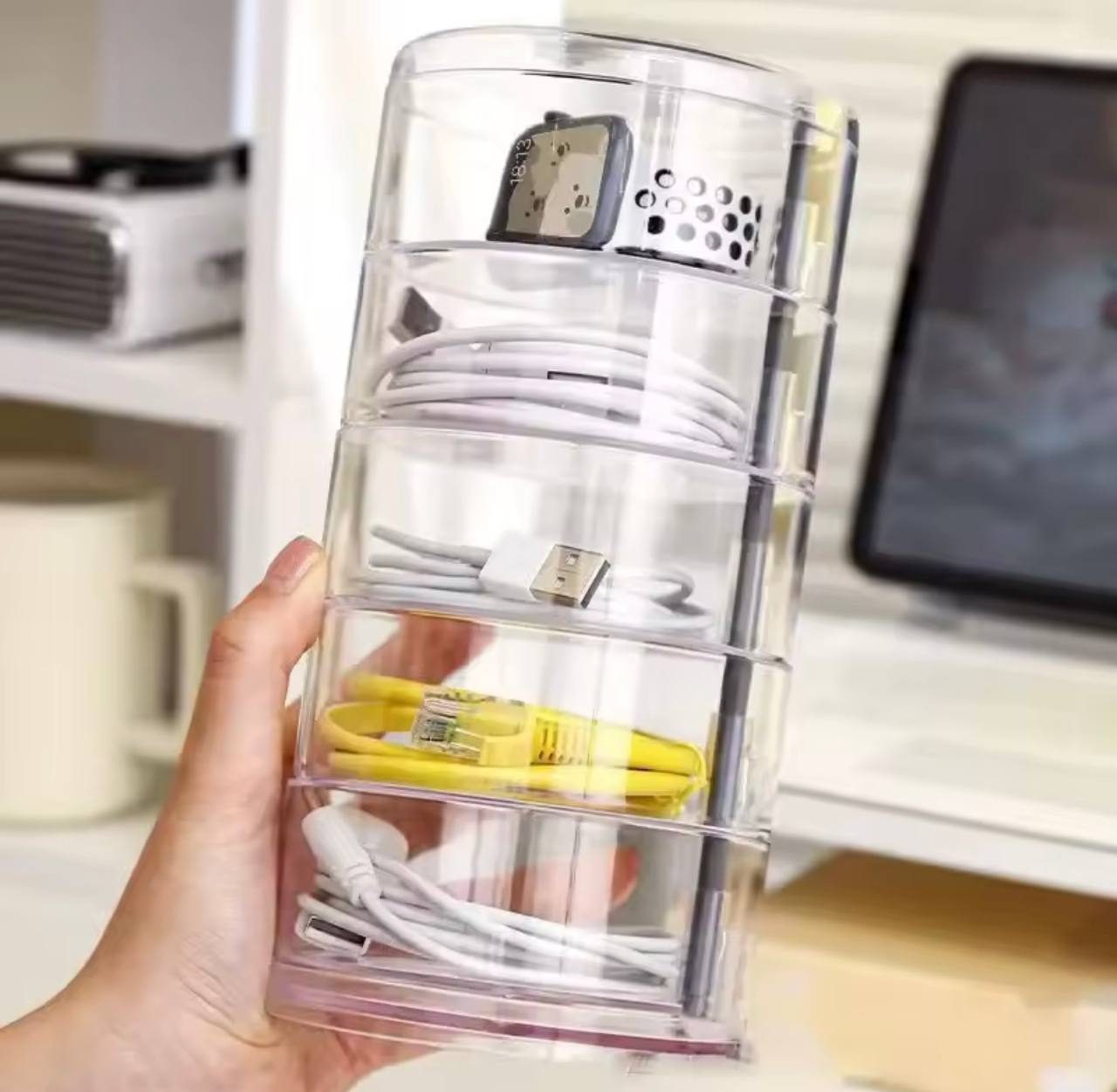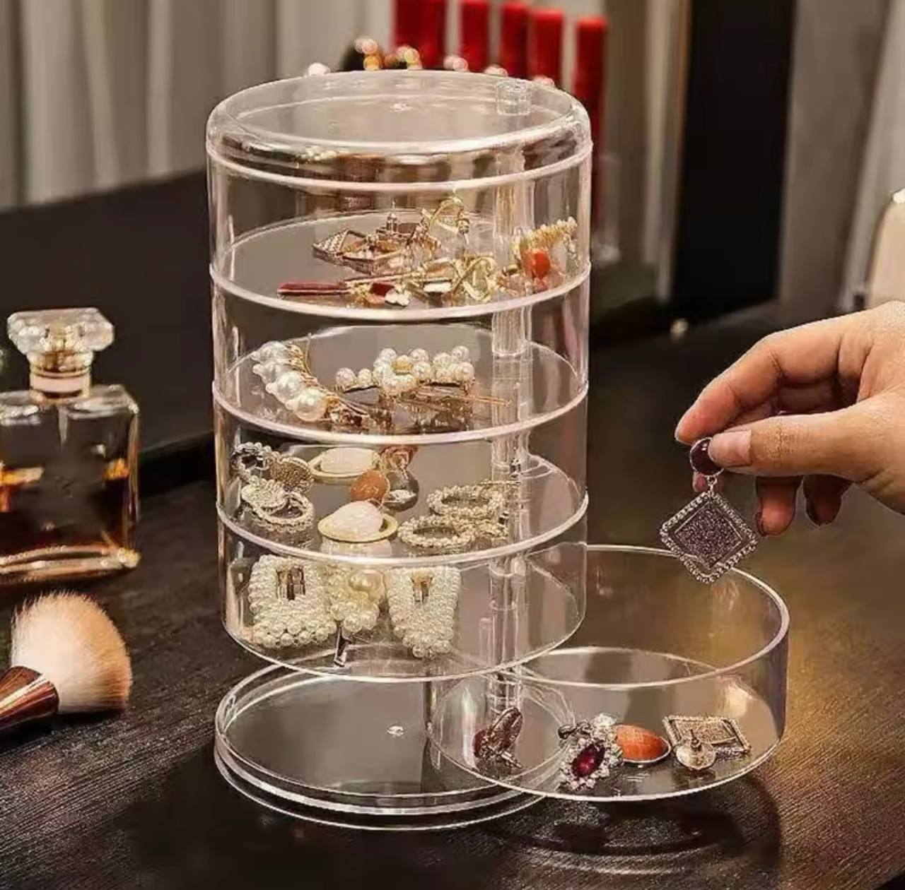 صندوق تخزين مجوهرات دوار ، حامل عرض للأساور والأقراط والساعات