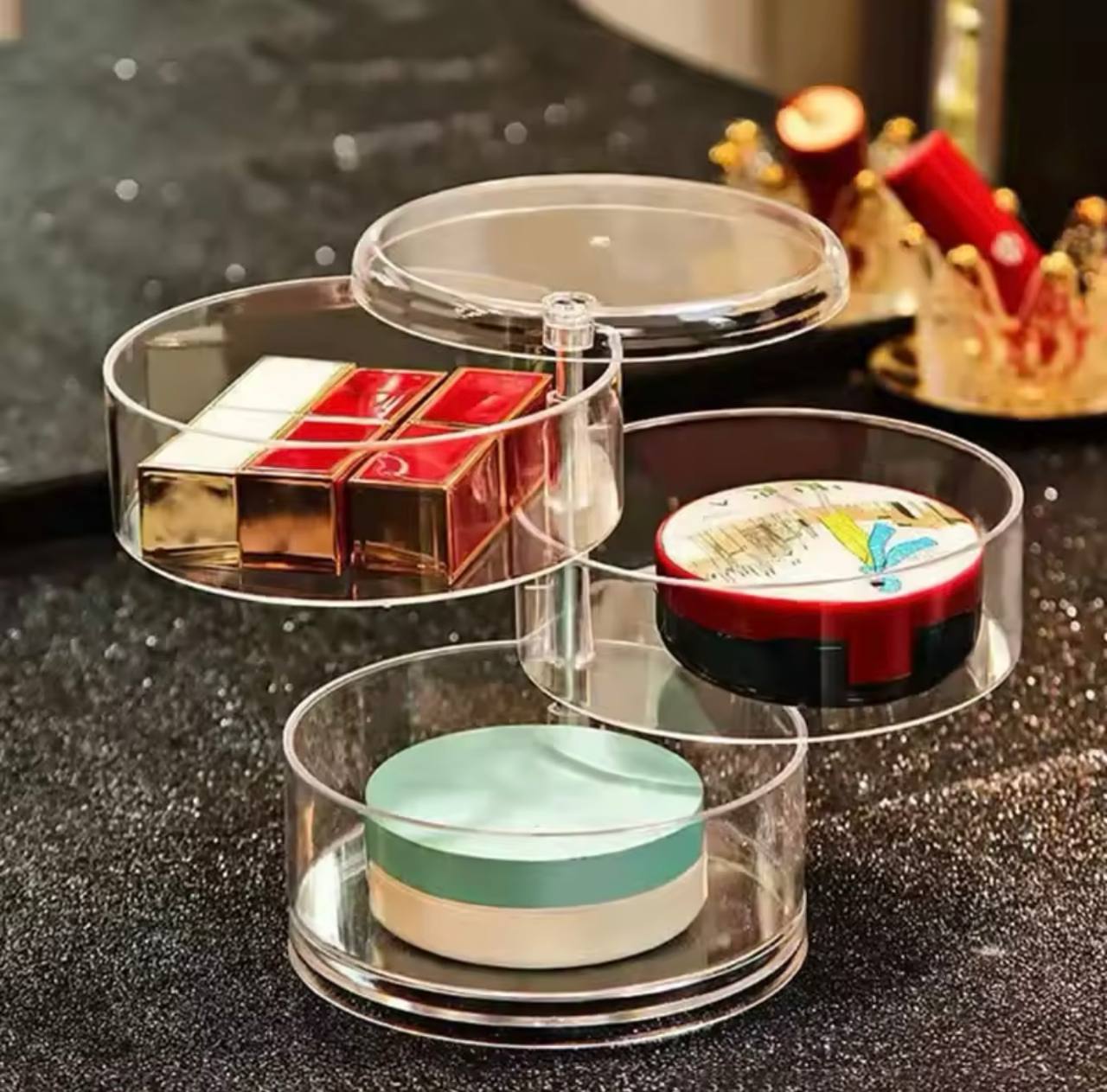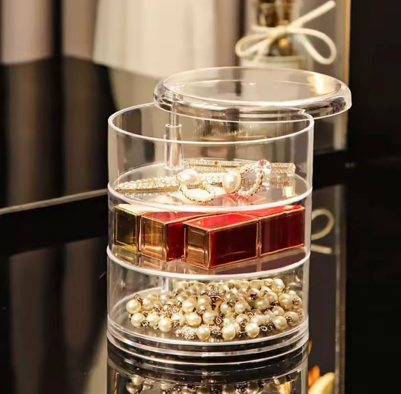 | وصف المنتج : صندوق تخزين مجوهرات دوار ، حامل عرض للأساور والأقراط والساعات ✅أقل عدد ديال جملة هو 25 حبة ممكن تكون مخلطة من جميع الموديلات مرحبا بكم لملييييييييح 🔥 |