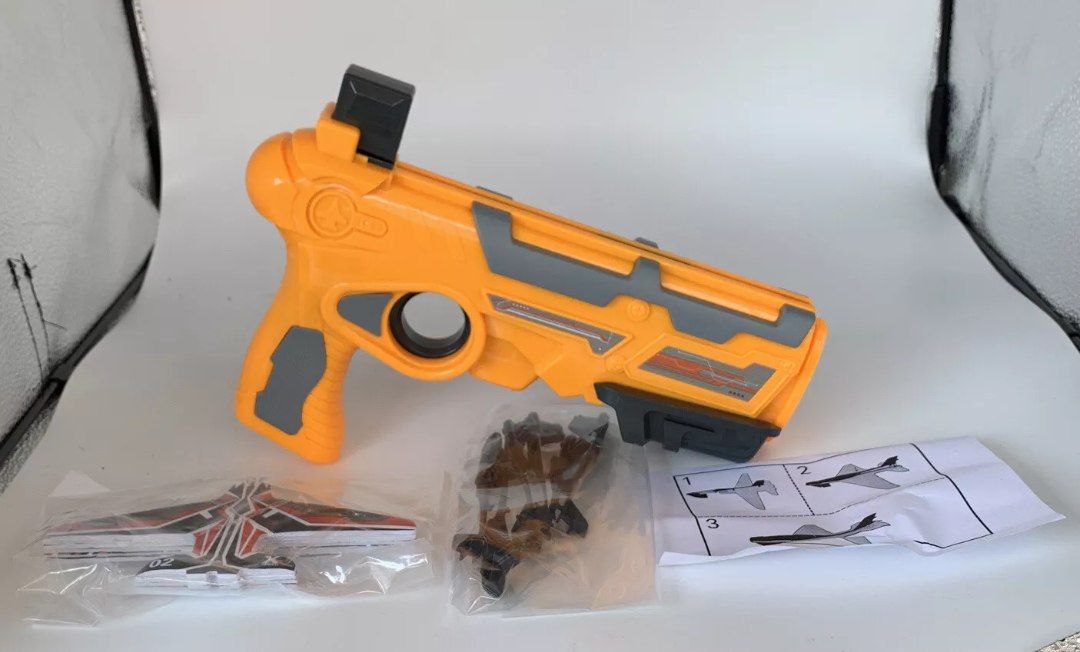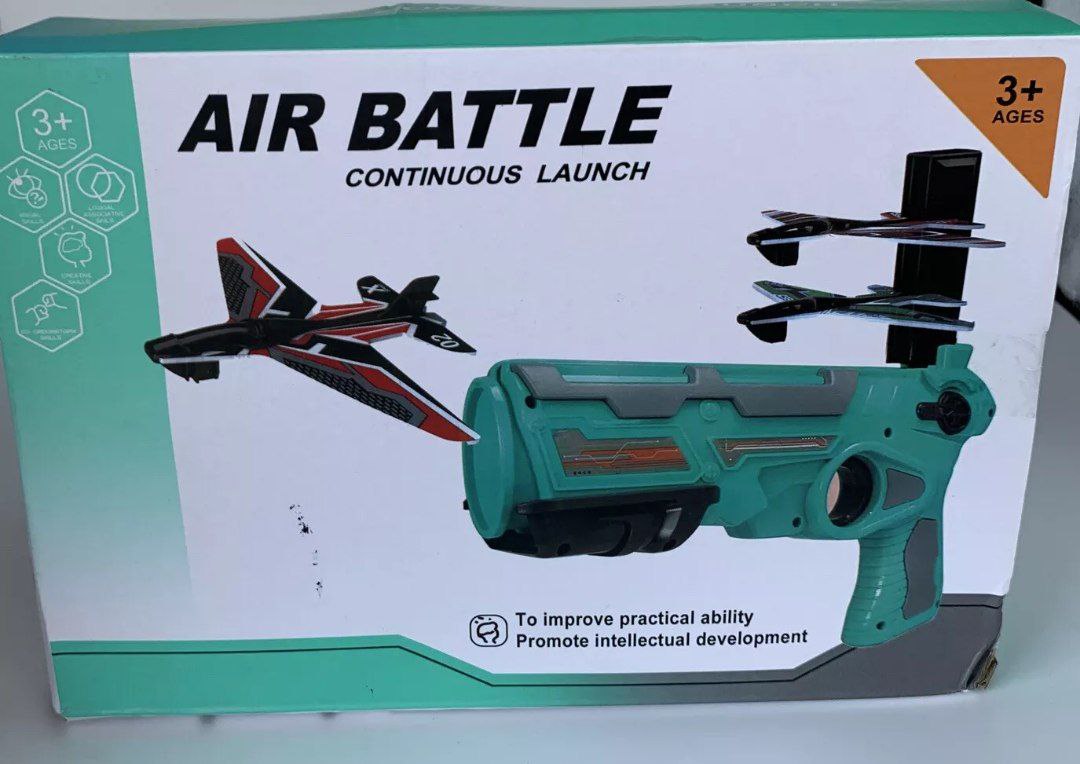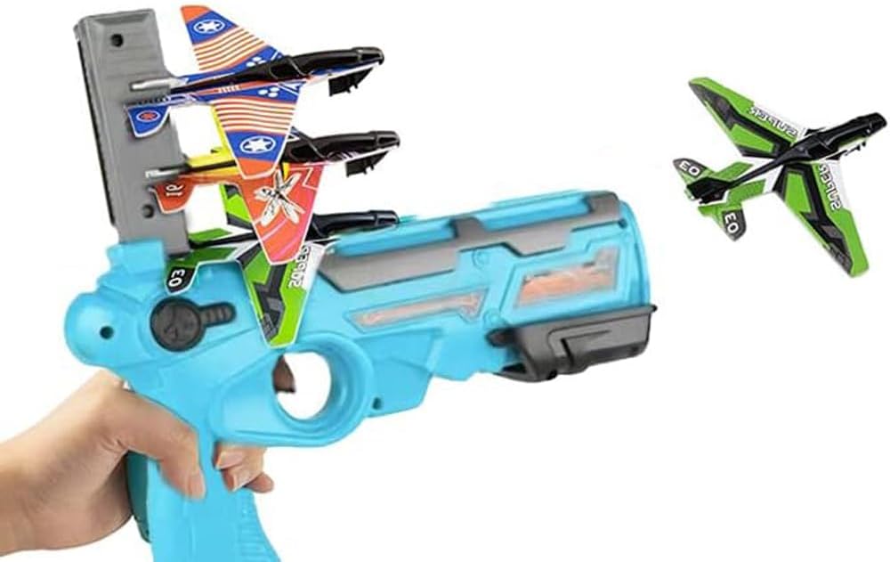 | وصف المنتج : لعبة مسدس قاذف الطائرات Pistolet catapulte en polystyrène avec 3 patins d'avion, jouet avion à partir de 4 ans |