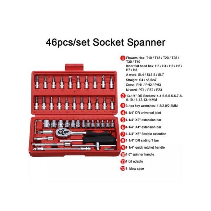 مجموعة أدوات المقبس والسقاطة المكونة من 46 قطعة Pack jeu de 46 pièces pour outils douilles et cliquets