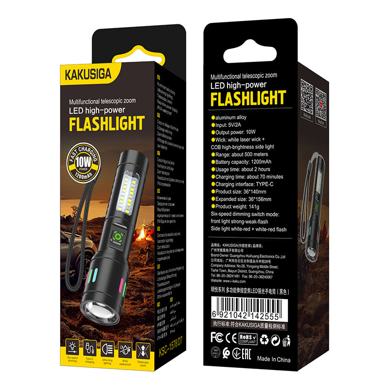 Lampe de poche multifonctionnelle مصباح يدوي متعدد الوظائف IPX4 مع تكبير تلسكوبي ومصباح LED عالي الكثافة