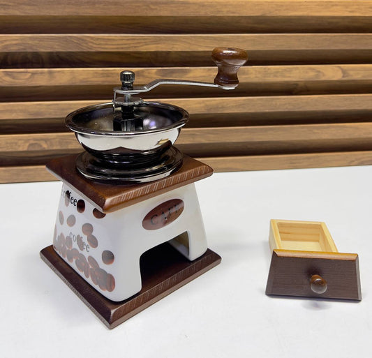 مطحنة قهوة يدوية خشبية بتصميم كلاسيكي Moulin à café manuel en bois pour grains de café