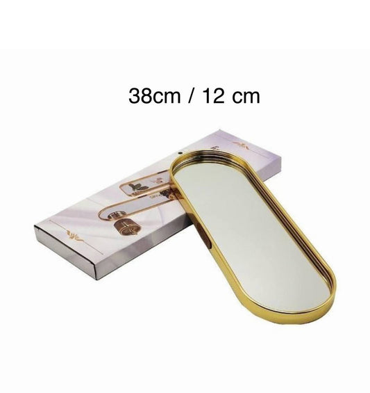 • صينية مزخرفة بمرآة من المعدن الذهبي اللون 40×12×1.5 سم Plateau miroir décoratif en métal doré