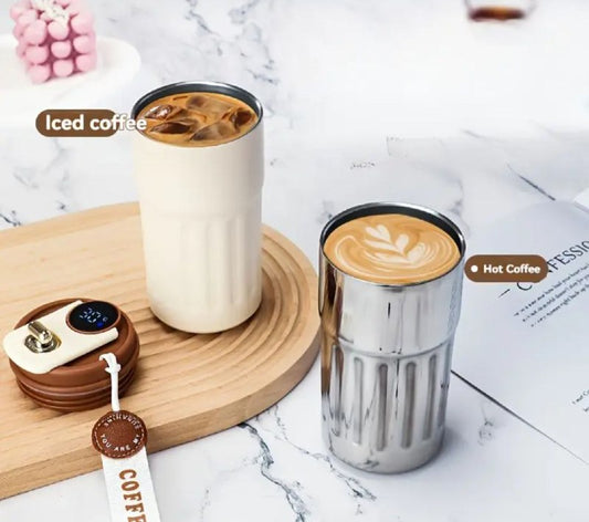 tasse à café isotherme en acier inoxydable avec affichage de la température