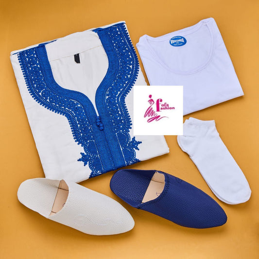 • بلغة فاسية متقونة وكندورة رفيعة جوهرة و بودي نصف كم وتقاشر هدية
