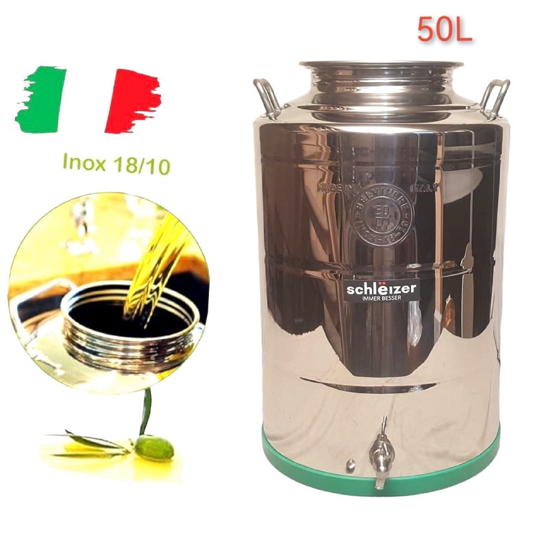 حاوية من الفولاذ المقاوم للصدأ بسعة 50 لترًا لتخزين ونقل السوائل الغذائية.