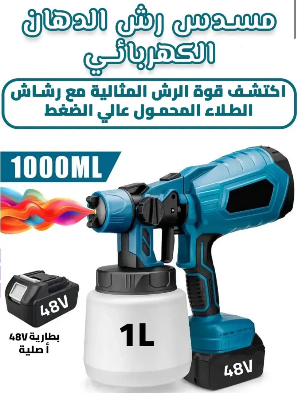 وصف المنتج : مسدس رش الدهان الكهربائي*** اكتشف قوة الرش المثالية مع رشاش الطلاء المحمول عالي الضغط*** 1000ML*** 48V*** بطارية 480 أصلية*** 1L ¨¨¨Colis 12 pcs |