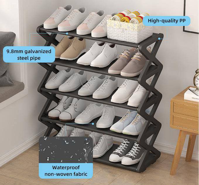 وصف المنتج : رف أحذية أنيق بخمس طبقات🟢 بتصميم "X" جانبي. مصنوع من أنابيب فولاذ مجلفنة بسمك 9.8 مم وقطع بلاستيكية PP عالية الجودة، مع طبقات من قماش غير منسوج مقاوم للماء. يساعد على تنظيم الأحذية بشكل مرتب ويحميها من الغبار والرطوبة. 👟 |