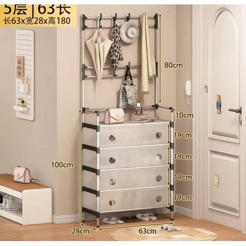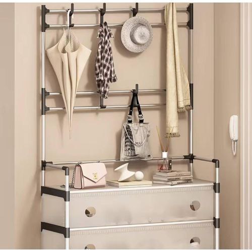 وصف المنتج : رف أحذية، 2 في 1، 5 طبقات بالإضافة إلى خطافات، رف معاطف متعدد الوظائف |