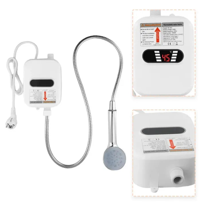 | وصف المنتج : سخان مياه كهربائي فوري مع دش - شاشة عرض رقمية LED، ضبط سريع وآمن لدرجة الحرارة للحمام Chauffe-eau électrique instantané avec douche – Affichage numérique LED, réglage de température rapide et sécurisé pour salle de bain. 📦 أقل كمية للطلب: 2 قطع |