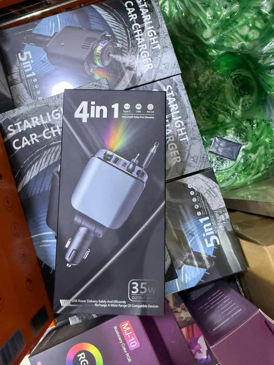 شاحن سيارة قابل للسحب 4 في 1 Chargeur de Voiture 4-en-1 Starlight Rétractable