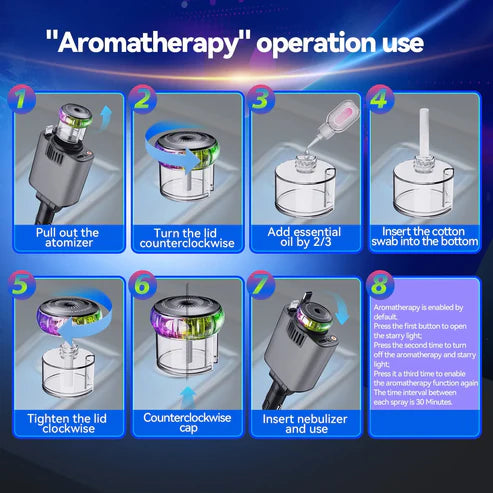 شاحن سيارة متعدد الوظائف 3 في 1 ضوء النجوم وموزع الروائح Chargeur de Voiture Multifonction 3-en-1 Lumière Étoilée Diffuseur d’Arômes