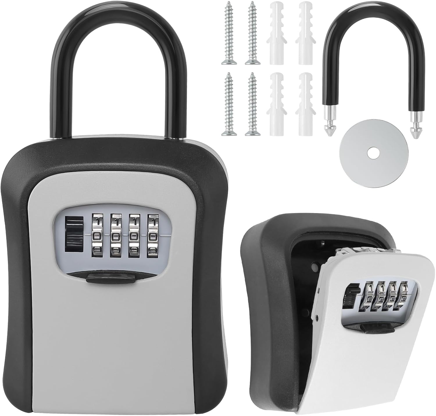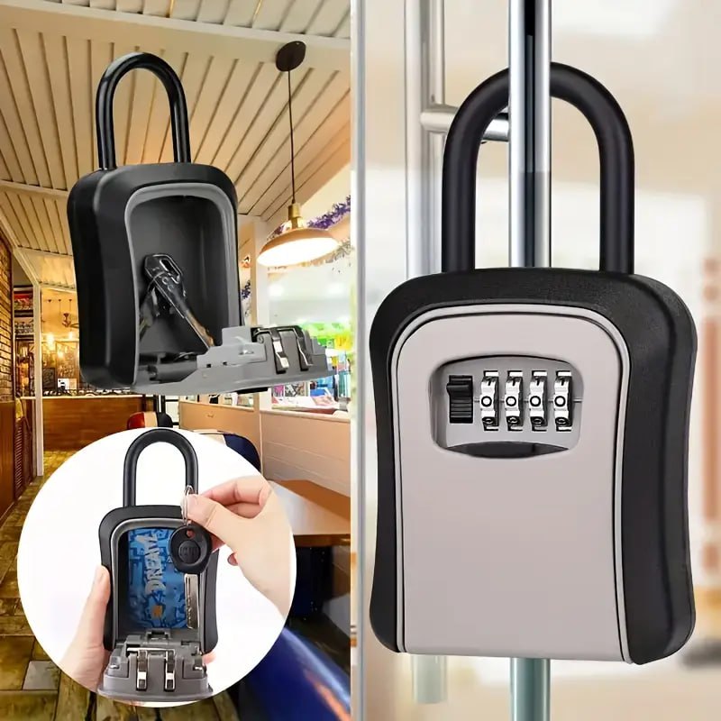 وصف المنتج : صندوق مفاتيح مثبت على الحائط مع مقبض، صندوق مفاتيح آمن مع رمز مكون من 4 أرقام، صندوق مفاتيح خارجي آمن مقاوم للطقس ومتين للمفاتيح والبطاقات وسبائك الزنك Boite a Clefs Murale avec Manipuler, Boite à Clé Sécurisée avec Code à 4 Chiffres, Résistant aux Intempéries Boite a Cle Externe de Sécurité Robuste pour Clés, Cartes, Alliage de Zinc |