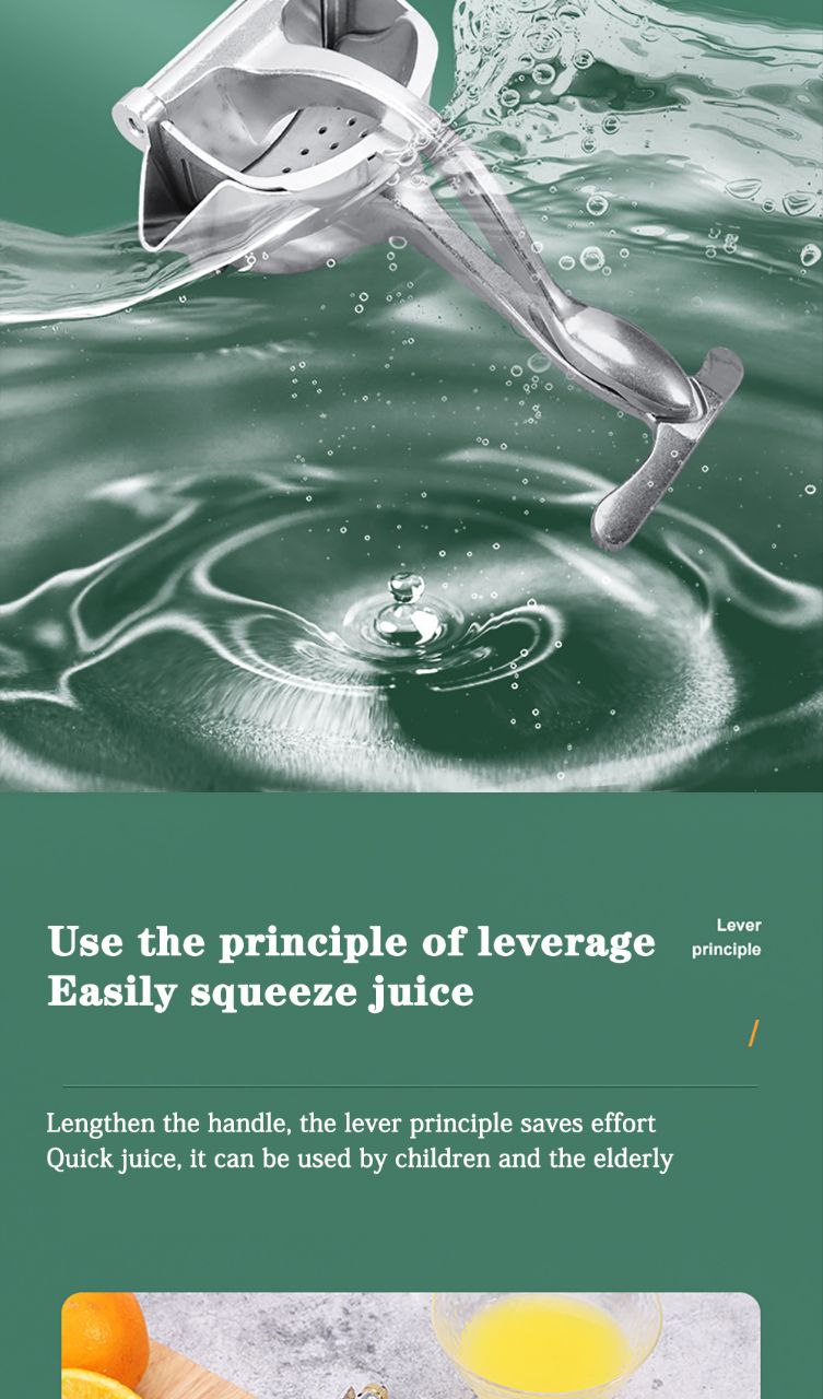 | وصف المنتج : عصارة الحمضيات اليدوية سهلة الاستخدام: ما عليك سوى تقطيع الفاكهة إلى قطع صغيرة، ووضعها في العصارة المزودة بكيس ترشيح، ثم الضغط على المقبض، والاستمتاع بالعصير. المواصفات: المادة: سبيكة ألومنيوم؛ اللون: فضي؛ حجم المنتج: 229 * 114 * 102mm 9.02 * 4.49 * 4.02in Presse-agrumes manuelle presse-agrumes en aluminium presse-agrumes ménage Simple presse-fruits orange |