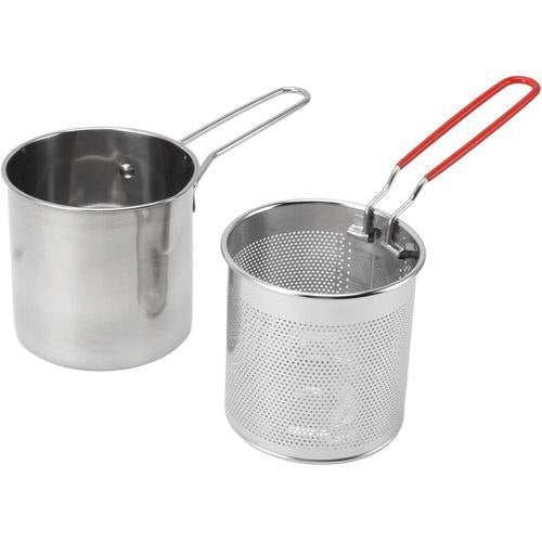Friteuse en acier inoxydable avec panier et poignées rouges pour friture sécurisée à la maison