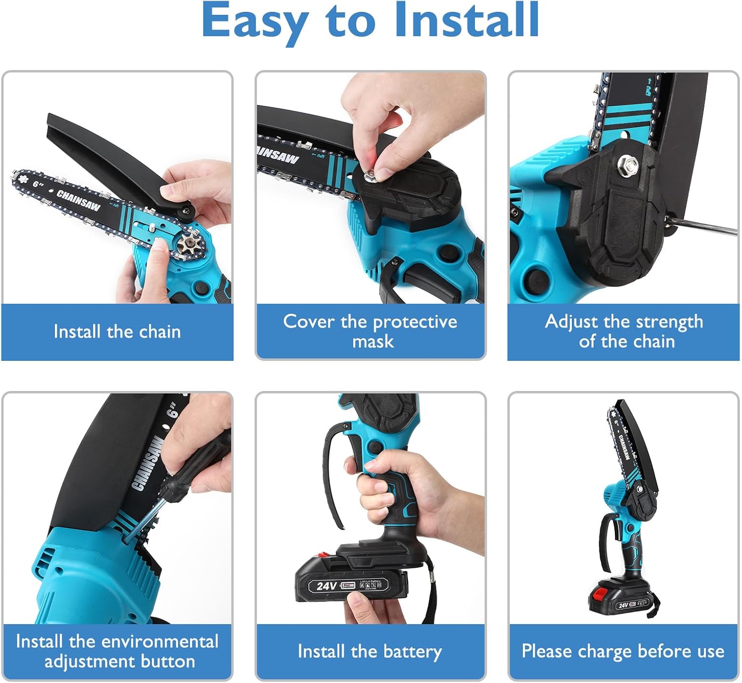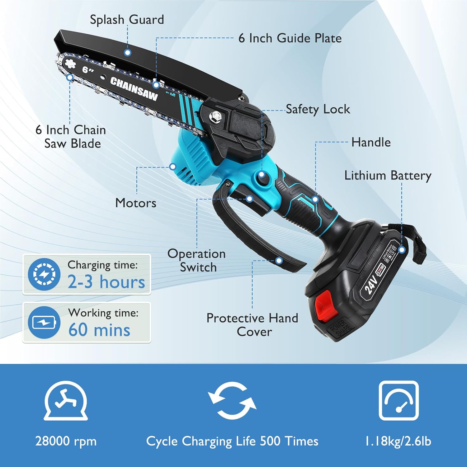 منشار كهربائي لاسلكي، منشار يدوي صغير، محرك بدون فرشاة 800W Mini Tronconneuse a Batterie 6 Pouces Tronçonneuse sans fil, mini scie portative