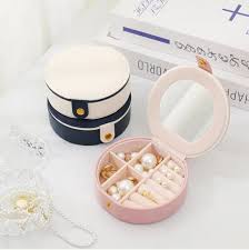 علبة مجوهرات على شكل أسطوانة، صندوق مجوهرات محمول للسفر، حافظة مجوهرات للقلادة والسوار والأقراط.
