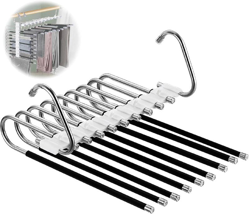 Cintres pour pantalons, peu encombrants en acier inoxydable شماعات بنطلونات من الفولاذ المقاوم للصدأ موفرة للمساحة، غير قابلة للانزلاق