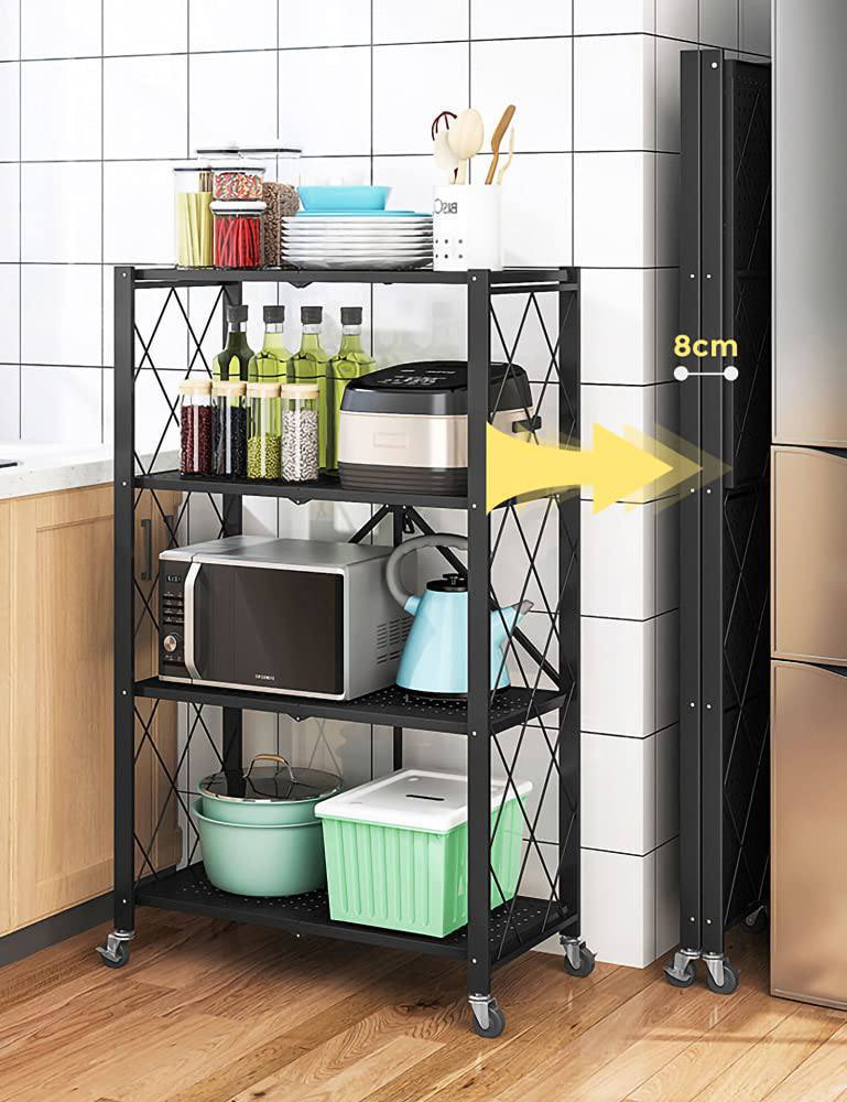 Étagère métallique pliante à roulettes 4 niveaux وحدة رفوف معدنية قابلة للطي من 4 طبقات مزودة بعجلات