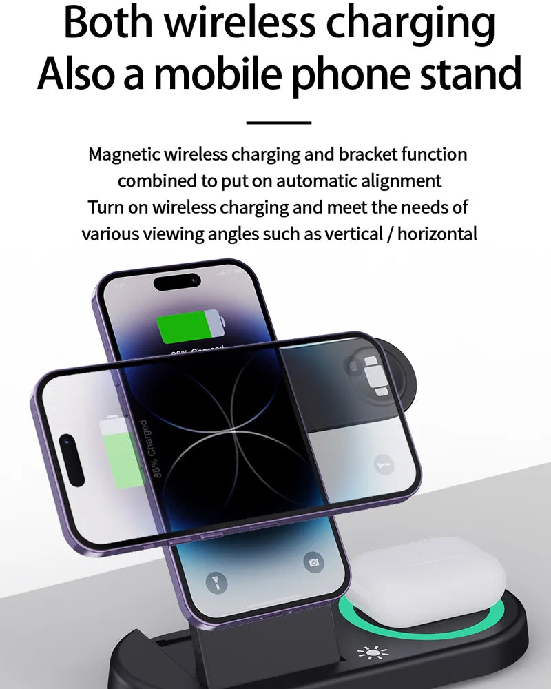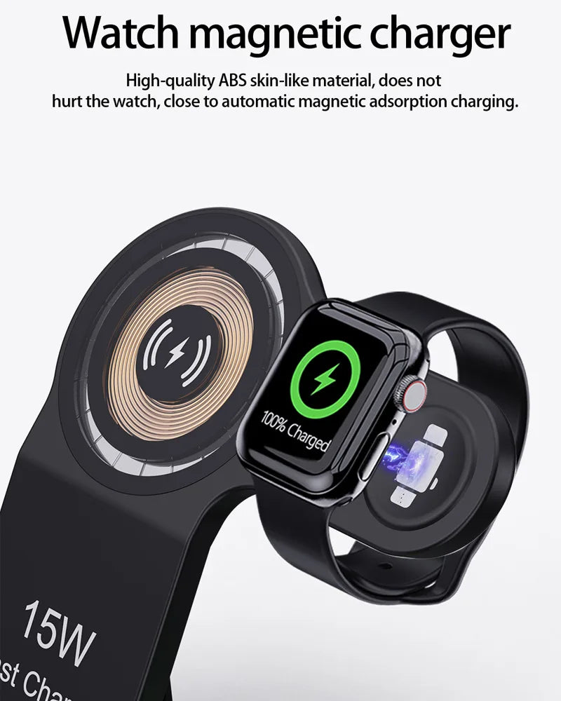 Fast charger 15W 15W 3-en-1 chargeur de téléphone sans fil multifonction pliable réglable charge sans fil AK1006