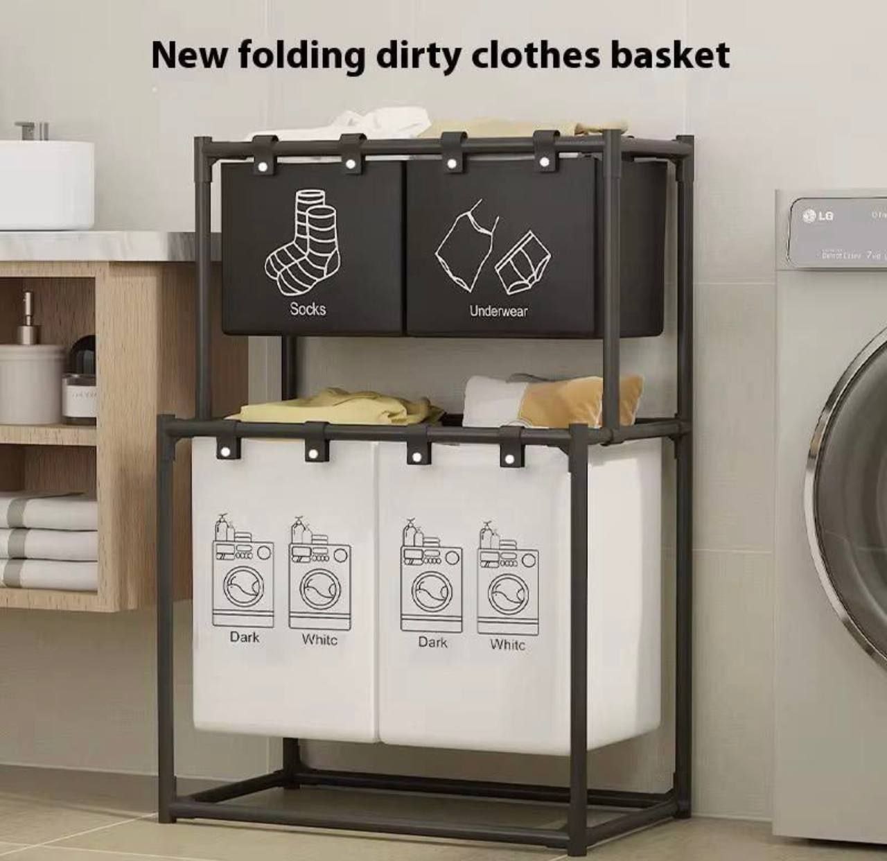 Folding dirty clothes basket سلة ملابس متسخة قابلة للطي