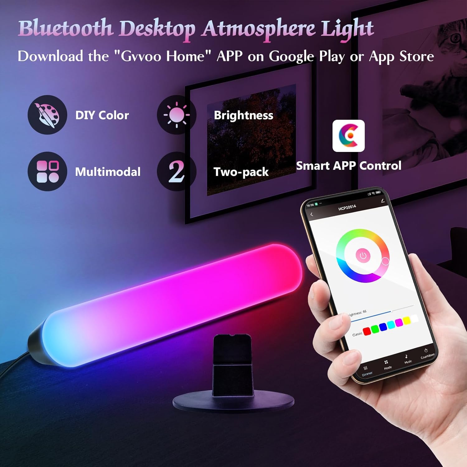 LED light Bar Lot de 2 barres lumineuses LED intelligentes مصابيح متزامنة مع الموسيقى إضاءة مزاجية للتلفزيون والكمبيوتر والأفلام
