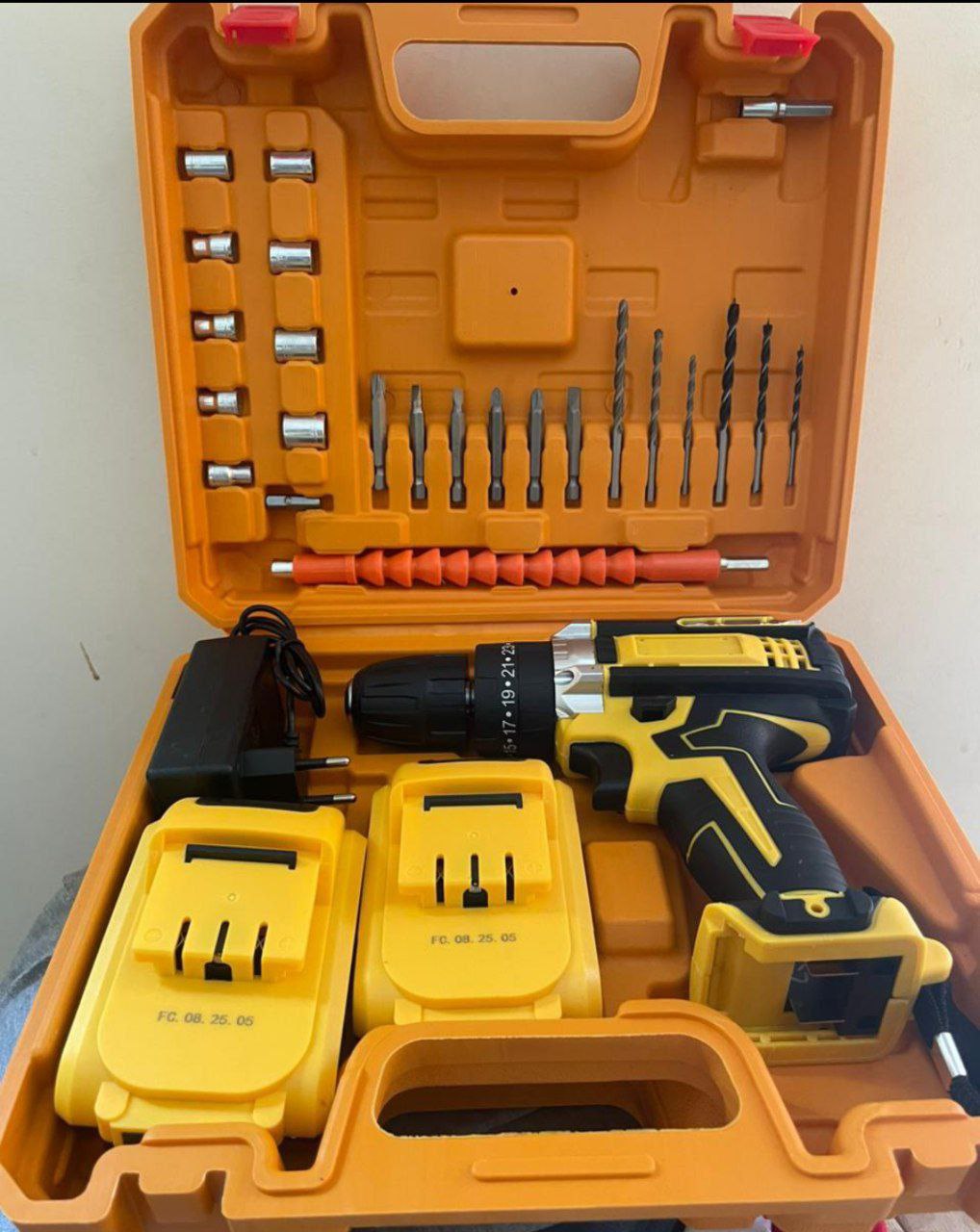 Perceuse sans fil 21V avec double batterie rechargeable مثقاب لاسلكي 21 فولت مع بطارية مزدوجة قابلة لإعادة الشحن