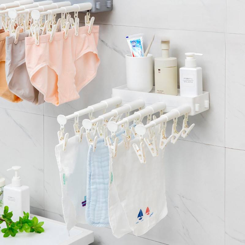 وصف المنتج : رفوف ملابس مثبت على الحائط لتجفيف الجوارب والملابس الداخلية، مع عدة مشابك غسيل Porte-vêtements Mural Pour Sécher Les Chaussettes Et Les Sous-vêtements, Avec Plusieurs Pinces À Linge |