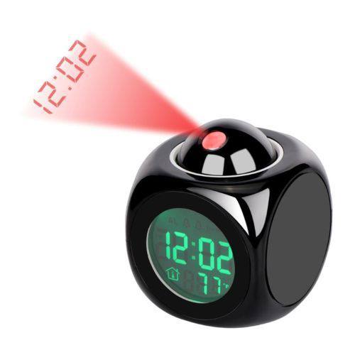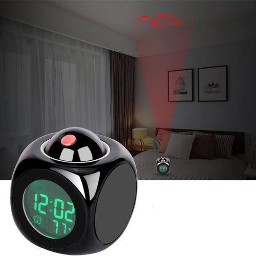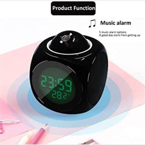 Réveil à Projection Plafond Heure, Réveil de Projection ساعة منبه إسقاط السقف، رقمية، ساعة عرض بلاستيكية متعددة الوظائف مع شحن USB وشاشة LED ووظيفة صوتية